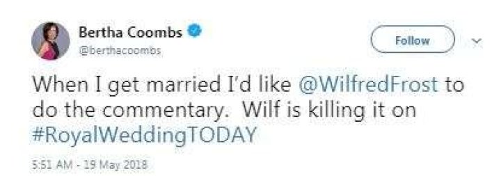 After a while, in her twitter, she hinted that she might be planning her marriage soon and she wanted someone like Wilfried Frost to do the commentary in her marriage.