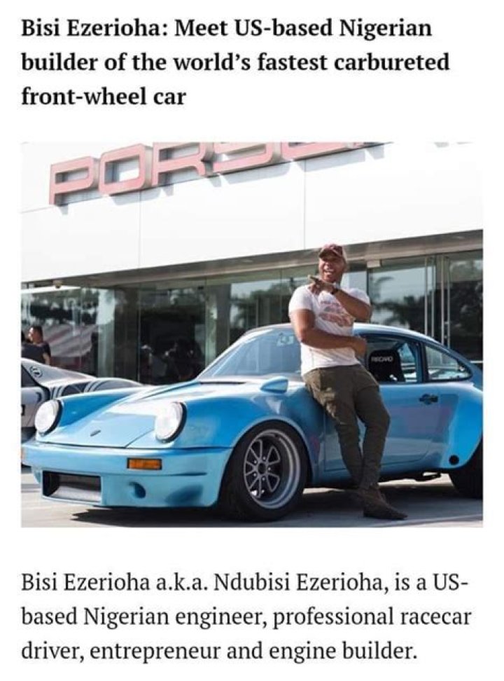 - Bisi Ezerioha is a US-based Nigerian engineer and engine maker with several recognitions