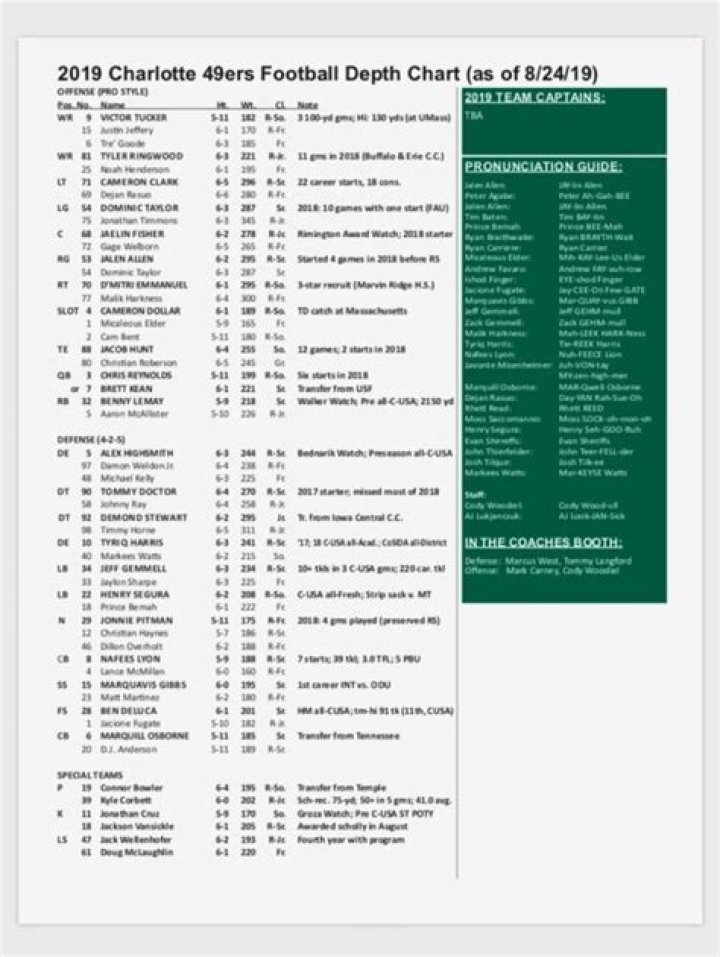 Charlotte 49ers Depth Chart 2023