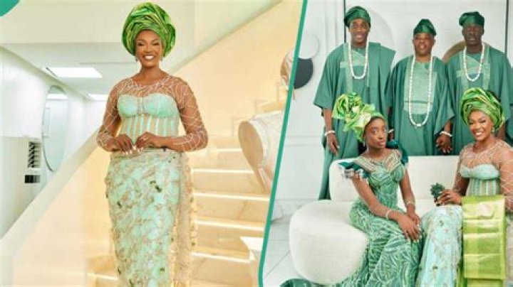 - She wore green native attire, which she combined with a 'gele' that gave her a glamorous look