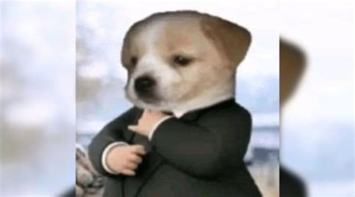 - After the dog was dressed up in the suit, it posed for a photo shoot as it made faces in the viral video
