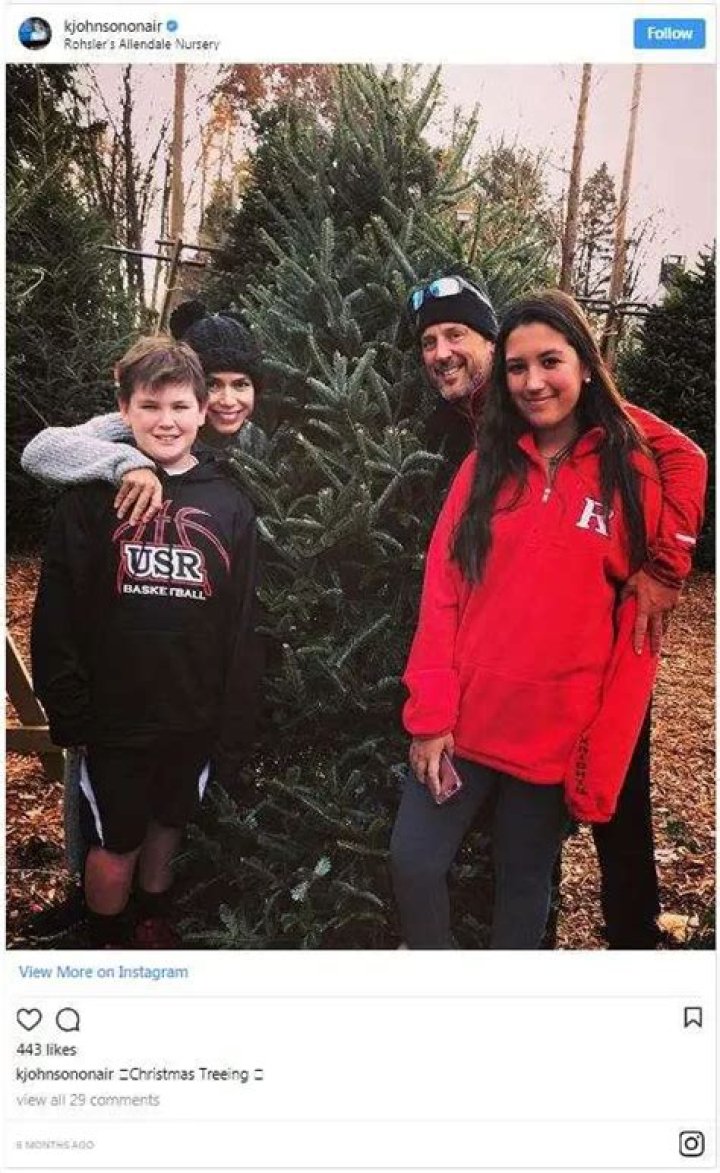 Christmas Means Fun With Family: Kristine poses with her husband and children in front of Christmas tree in December 2017 (Photo: Kristine Johnson's Instagram)