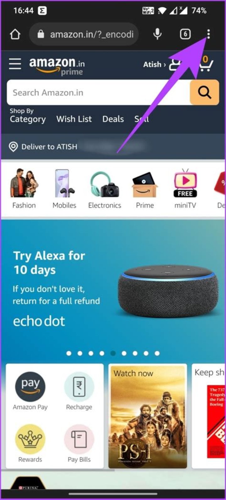 - Open the Amazon menu and click on “Accounts & Lists”.