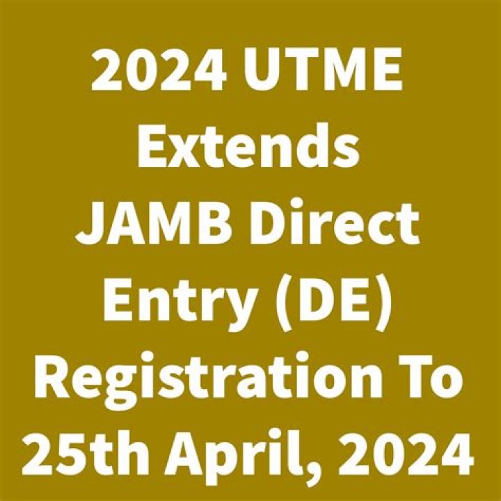 - The spokesperson for the Joint Admissions and Matriculation Board (JAMB), Fabian Benjamin, announced the extension of the 2024 Direct Entry (DE) registration
