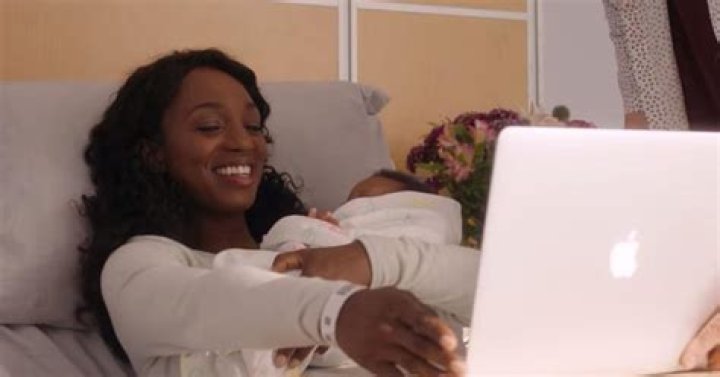 Sloane (Enuka Okuma) shows off her newborn baby boy on a video call.