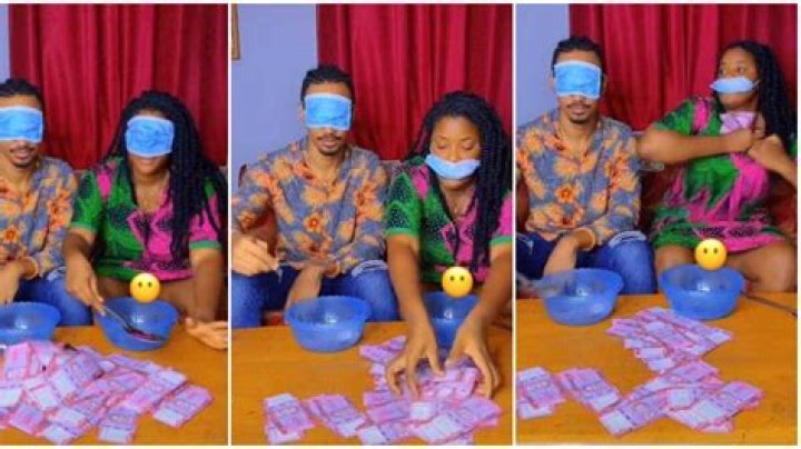 A funny blindfold money game between a couple has elicited hilarious reactions on social media.
