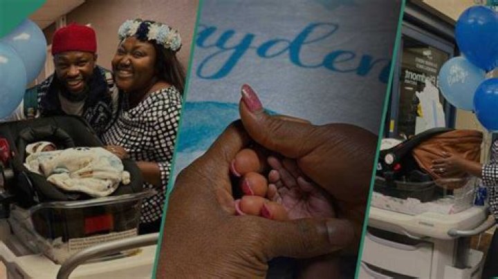 - The Nollywood lovebirds shared the good news on social media with a video of them leaving the hospital with their bundle of joy
